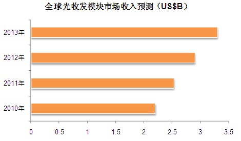 【訊石光通訊咨詢網(wǎng)編譯】LightCounting最新市場報告預計,2010年全球光收發(fā)器市場銷售額將達22億美元,該市場2009年至2013年間年復合增長率為15%,主要受寬帶市場日益增長的影響。