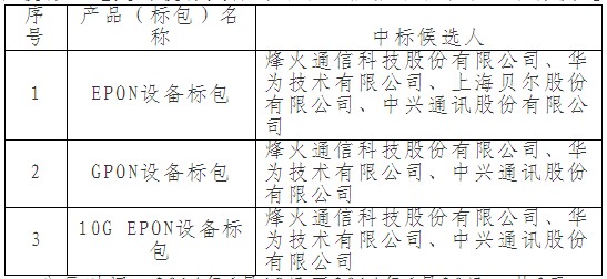ICCSZ訊(編輯:Debi)啟動于2014年3月31日的中國電信PON設備(2014年)集中采購項目,不到三個月后的6月18日,中國電信官方公布了集采結果。其中,EPON設備標包由烽火通信、華為、上海貝爾、中興四家包攬;GPON設備標包由烽火通信、華為和中興中標;10GEPON設備標包則花落烽火通信、華為和中興。烽火通信再次成為大贏家。