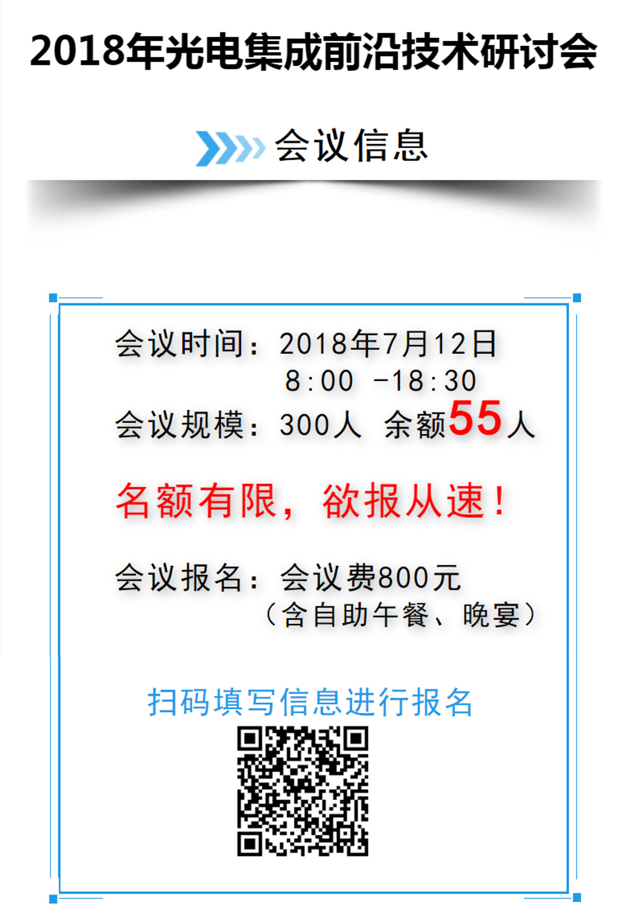 2018年光電集成前沿技術研討會即將于7月12日隆重舉行!