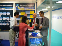 朗光科技今年的展臺(tái)位置選擇很棒,來(lái)往人流量較大。朗光寬敞明亮的1000平米耦合器制造超凈車(chē)間彩圖吸引了不少參觀者的眼球。我們就是要向國(guó)外客戶證明,中國(guó)造不是低成本低價(jià)格的代名詞,我們?cè)谄焚|(zhì)管理,研發(fā)和制造上的投入也是很大的。我們希望做出自己的品牌來(lái)。