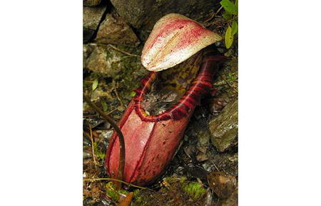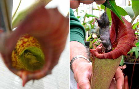 圖4、打開這種豬籠草(Nepenthes truncata),發(fā)現(xiàn)一只死老鼠。
