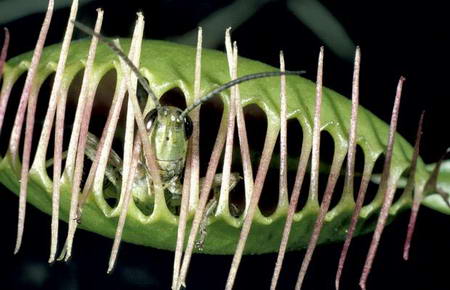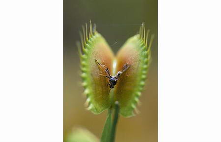 圖1、捕蠅草是一種特別有趣的“食肉”植物,它長有一些形似貝殼的捕蟲夾,且分泌蜜汁,能將闖入的小蟲夾住,并消化吸收。