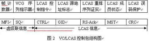 虛級(jí)聯(lián)VCAT和LCAS功能的實(shí)現(xiàn)都是通過同一個(gè)字節(jié)完成的。在VC-3/VC-4中采用H4字節(jié);由其構(gòu)成2個(gè)重復(fù)幀,第一個(gè)重復(fù)幀由16幀組成,第二個(gè)重復(fù)幀的長度為256幀。要完成一組VC控制信息的傳輸至少需要16幀,即2ms的時(shí)間。一個(gè)VCG最多由256個(gè)VC組成。
