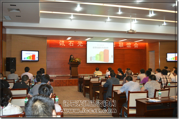 聯(lián)誼會(huì)一開(kāi)場(chǎng),由訊石高級(jí)分析師吳娜給大家?guī)?lái)2013年5月全球光通訊市場(chǎng)動(dòng)態(tài)的演講,演講從運(yùn)營(yíng)商及投資建網(wǎng)情況、設(shè)備商/器件商/原材料商的動(dòng)態(tài)、合并重組、新產(chǎn)品新技術(shù)及對(duì)市場(chǎng)數(shù)據(jù)的分析這幾大塊,闡述全球光通訊目前的狀況。值得一提的是,分析師吳娜還解析了國(guó)內(nèi)政策的動(dòng)向。