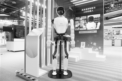 北京市中關(guān)村展示中心常設(shè)展上的人形機(jī)器人。 視覺中國(guó)供圖