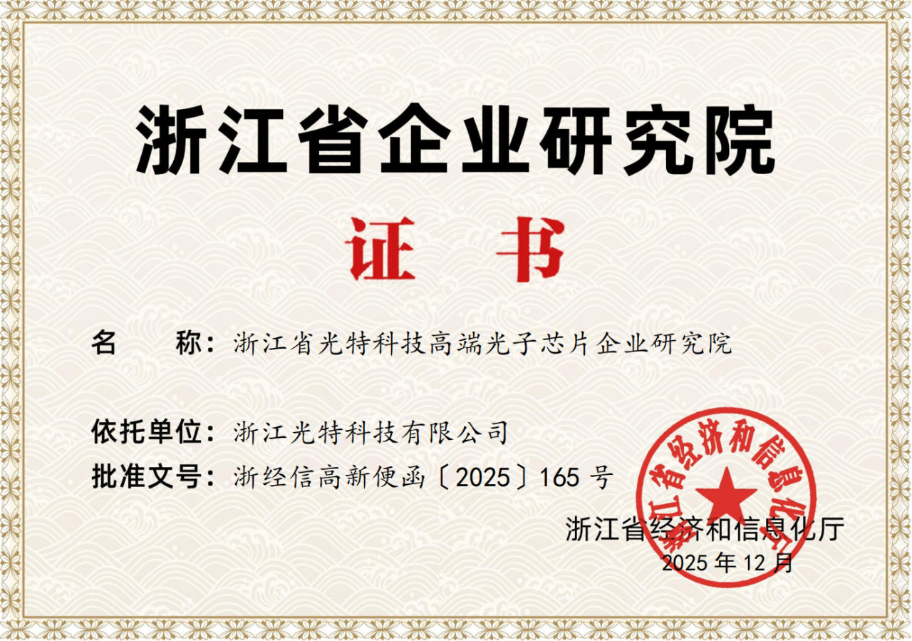 ICC訊 近日,浙江省經(jīng)濟和信息化廳正式發(fā)文,浙江光特科技有限公司憑借在高端光子芯片領域的深厚技術積累與創(chuàng)新實力,成功獲批組建 “浙江省光特科技高端光子芯片企業(yè)研究院”,這一殊榮標志著公司在科研創(chuàng)新、產(chǎn)業(yè)轉化及行業(yè)引領等方面的綜合實力獲得省級權威認可,為企業(yè)高質量發(fā)展注入強勁動力。