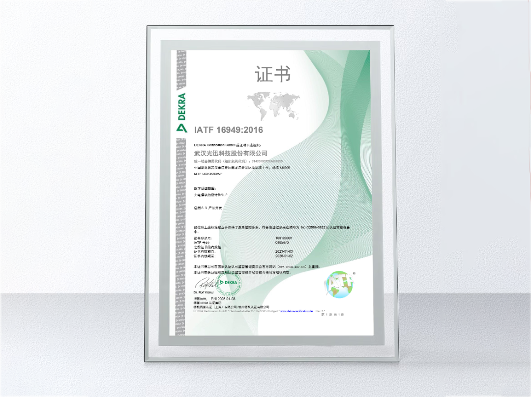 通過此次認證,意味著光迅科技車載光電子產品管理過程得到了國際權威機構認可,符合汽車領域設計和生產要求,可向汽車相關行業(yè)客戶提供品質保障及支持。未來,光迅科技將充分發(fā)揮光電子產品技術領先優(yōu)勢,堅決按照ISO9001、TL9000、IATF16949等質量管理體系要求,持續(xù)提升產品及服務品質,不斷推進與行業(yè)領域客戶的深度對話合作,以實現(xiàn)更好共贏發(fā)展!