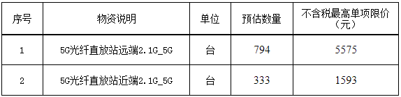 1.1 招標(biāo)范圍:招標(biāo)人5G無線網(wǎng)建設(shè)用5G光纖直放站, 具體要求詳見技術(shù)規(guī)范書。