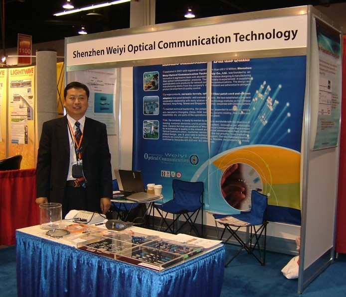 深圳威誼光通黃總在展臺(tái)前留影