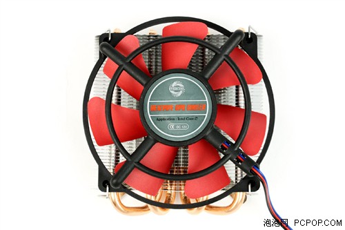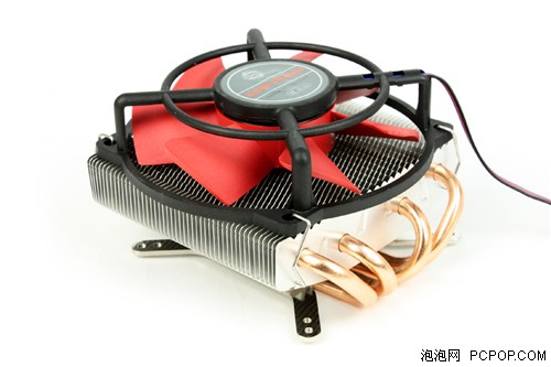 玄武是一款下吹式散熱器,支持Intel LGA1366與775平臺。設(shè)計上最大的優(yōu)勢就是身高不足7cm,具體尺寸為118x110x67mm。采用勁冷特制的92mm紅色懸吊風(fēng)扇,四根熱管搭配大面積鋁鰭片。