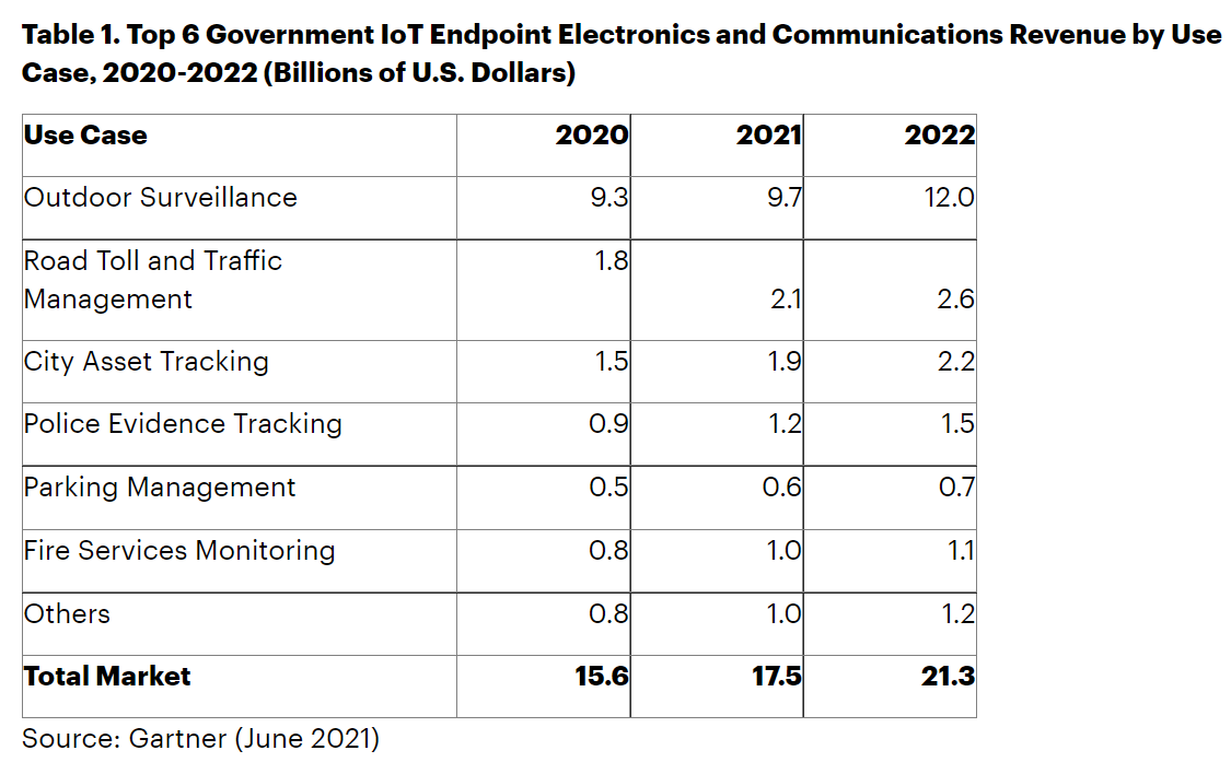 在全球范圍內(nèi),超過 50% 的政府端點(diǎn)和通信服務(wù)支出用于戶外監(jiān)控,主要目的是改善公共健康和安全。