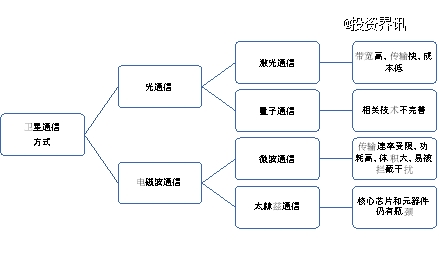 衛(wèi)星的通信方式主要可分為2類(lèi):使用電磁波進(jìn)行通信,以及使用光進(jìn)行通信。進(jìn)一步細(xì)分,又可分為微波通信、太赫茲通信、激光通信和量子通信。