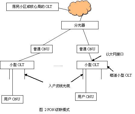 3.由于目前OLT 設(shè)備多放在核心局點或較大的基站,每個位于樓道的ONU通過本小區(qū)的分光器,經(jīng)由市內(nèi)光纜接入OLT ,每個住宅小區(qū)要占有1 芯室內(nèi)光纜,纖芯消耗較大。