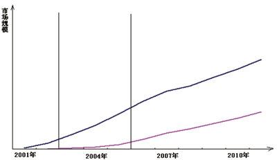 2000年~2002年,cdma20001x處于市場(chǎng)起步期,cdma20001x網(wǎng)絡(luò)和終端技術(shù)逐步成熟,網(wǎng)絡(luò)部署不斷拓展,形成一定的用戶規(guī)模。從2002年開始,EV-DO進(jìn)入市場(chǎng)。