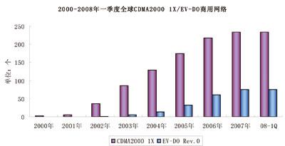 2006年至今,在一些發(fā)達(dá)國(guó)家和地區(qū)cdma20001x進(jìn)入市場(chǎng)成熟期,但在大多數(shù)發(fā)展中國(guó)家和地區(qū)cdma20001x仍處于快速發(fā)展期。而EV-DO則進(jìn)入快速發(fā)展期,全球EV-DO用戶規(guī)模呈現(xiàn)快速發(fā)展的態(tài)勢(shì)。