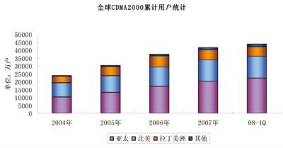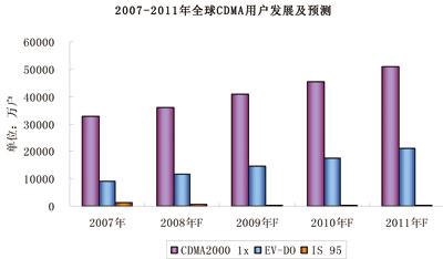 從用戶規(guī)???,截止到2008年一季度,全球CDMA用戶累計(jì)達(dá)到4.51億戶,其中cdma20001x用戶累計(jì)達(dá)到3.41億戶,EV-DO用戶累計(jì)達(dá)到9693萬(wàn)戶,絕大部分IS-95用戶已向cdma2000網(wǎng)絡(luò)轉(zhuǎn)移。