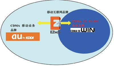 KDDI在推廣移動(dòng)業(yè)務(wù)時(shí),還先后在移動(dòng)通信品牌“au”品牌的基礎(chǔ)上建立了移動(dòng)互聯(lián)網(wǎng)品牌“EZ”以及EV-DO品牌“WIN”。KDDI業(yè)務(wù)的品牌關(guān)系如圖8所示。