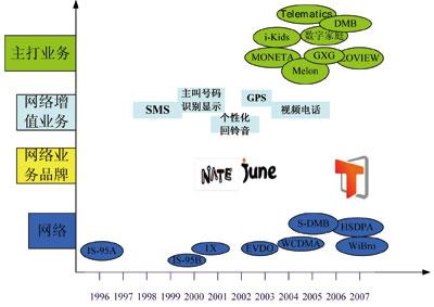 根據(jù)業(yè)務(wù)的開展情況以及未來(lái)發(fā)展前景等多方面因素,SKT不斷推出非常有特色的業(yè)務(wù)品牌。SKT基于CDMA網(wǎng)絡(luò)技術(shù)先后推出了“NATE”、“June”兩大業(yè)務(wù)品牌,“NATE”是于2000年10月推出的基于cdma20001x網(wǎng)絡(luò)的業(yè)務(wù)品牌;“June”是2002年11月,SKT在原有移動(dòng)電話服務(wù)的基礎(chǔ)上,推出的基于cdma20001xEV-DO網(wǎng)絡(luò)的數(shù)據(jù)多媒體業(yè)務(wù)品牌。隨著市場(chǎng)的發(fā)展,SKT將自己定位于全新的信息服務(wù)提供商,并立志為用戶提供無(wú)處不在的融合業(yè)務(wù),為了符合企業(yè)發(fā)展戰(zhàn)略需求,2006年SKT又推出了全新的“T”業(yè)務(wù),力求打造一個(gè)全新的融合業(yè)務(wù)品牌。