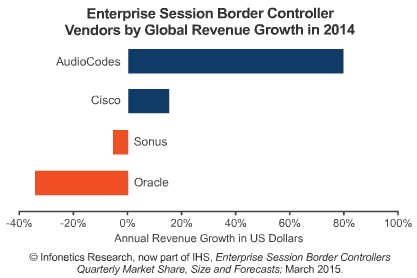 ICCSZ訊 日前,市場調(diào)研公司Infonetics發(fā)布其最新的關于企業(yè)會話邊界控制器(eSBC)市場報告。2014年企業(yè)會話邊界控制器市場收入為2.71億美元,同比2013年上漲6%。