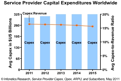 【訊石光通訊咨詢網(wǎng)】近期,Infonetics公布最新的“服務供應商資本開支、營運開支、ARPU和用戶”報告。