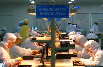 該公司成立于2001年1月,是致力于光通信器件研發(fā)、生產(chǎn)和銷售的高新技術(shù)企業(yè)。經(jīng)過幾年的發(fā)展,三優(yōu)光電已成為在國內(nèi)外光通訊行業(yè)里具有一定知名度的器件供應(yīng)廠商。擁有光電器件生產(chǎn)要求的超潔凈廠房和光電探測器、半導(dǎo)體激光器、CATV光接收組件、光收發(fā)模塊等產(chǎn)品生產(chǎn)線;建立了完備的擁有各類高端儀器設(shè)備的光電器件測試中心;同時(shí),憑借先進(jìn)的生產(chǎn)管理,公司具有大批量生產(chǎn)光通訊有源器件、無源器件系列產(chǎn)品的產(chǎn)能,已成為國內(nèi)外客戶的OEM高精加工基地。公司許經(jīng)理帶我們參觀了生產(chǎn)線。目前公司產(chǎn)線員工為四十多人,公司正在擴(kuò)產(chǎn)中。