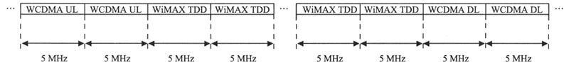 圖1 WCDMA和WiMAX頻譜相鄰情況