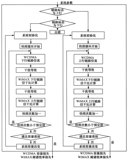圖2 WCDMA和WiMAX共存仿真流程