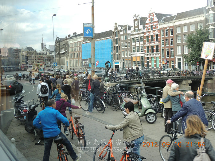 就算是廁所也不放過任何廣告的機(jī)會。 荷蘭航空上使用的紙杯,特別標(biāo)明為廢棄物回收利用。 注重環(huán)保、節(jié)能、實用是這個城市給我們的第一印象。說到環(huán)保不得不說到自行車, 阿姆斯特丹不愧為“自行車王國”,途徑之處,四處可見騎車人的身影和擺放的自行車。自行車模樣也有當(dāng)?shù)靥厣?,樣子有點像我們的“傳統(tǒng)大28”,復(fù)古味十足,稱做“Dutch bicycle”。 自行車實用又環(huán)保,為了推行自行車交通政策,荷蘭政府的市長部長們也常常騎自行車上下班。公務(wù)員辦事,70%的外出工作量是利用自行車和公共交通工具來完成的。阿姆斯特丹自行車幾乎人手一輛,絕對是自行車王國。 另外說到自行車,可以看到他們自行車坐墊也是非常之高,這從側(cè)面反饋出阿姆斯特丹人身高非常高,據(jù)悉荷蘭是世界上平均身高最高的國家,荷蘭居民平均身高為男182.5cm ,女172cm。 |