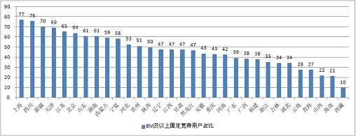 圖11 2015年4月全國各省8M以上固定寬帶用戶占比對比
