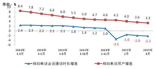 2015年4月份,我國三家基礎(chǔ)電信企業(yè)運行穩(wěn)中趨緩,收入增長小幅回升。