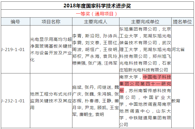 其中訊石會員中國電子科技集團公司第四十一研究所參與完成的“地質(zhì)工程分布式光纖監(jiān)測關(guān)鍵技術(shù)及其應(yīng)用”榮獲2018年度國家科學(xué)技術(shù)進步獎一等獎,中國電子科技集團公司第四十一研究所參與完成的“毫米波與太赫茲(50GHz~500GHz)測量系統(tǒng)”榮獲2018年度國家科學(xué)技術(shù)進步獎二等獎,長飛光纖光纜股份有限公司牽頭完成的“長飛光纖光纜技術(shù)創(chuàng)新工程”榮獲2018年度國家科學(xué)技術(shù)進步獎二等獎。
