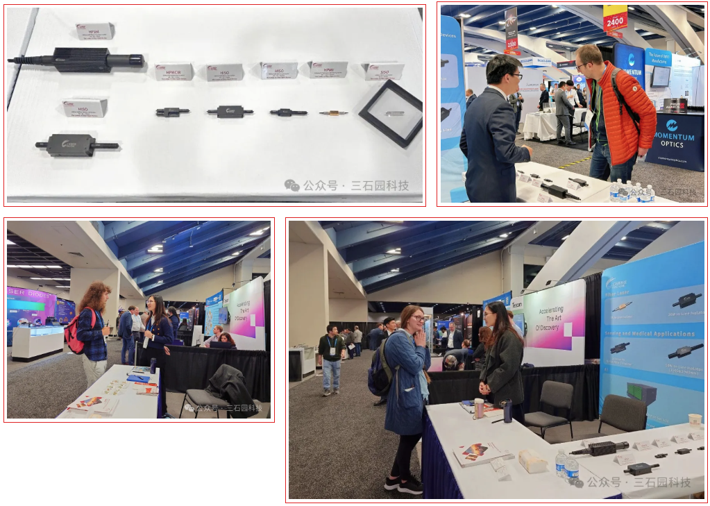 三石園科技首次參加美國西部光電展,展示了1064nm 250W光纖到自由空間隔離器、1940nm 50W 在線隔離器、1550nm PM 25/300 光纖環(huán)形器等多款光纖激光器件產(chǎn)品及創(chuàng)新應用方案,旨在滿足市場對更高功率、更小尺寸、更優(yōu)性能的持續(xù)追求。吸引眾多觀眾前來參觀交流。