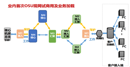 3. 驗(yàn)證了設(shè)備的穩(wěn)定性和可靠性:通過友好客戶的試用體驗(yàn)反饋以及長期誤碼率和丟包率的掛表測試,證實(shí)了采用OSU技術(shù)的設(shè)備具備長期穩(wěn)定性運(yùn)行的能力,網(wǎng)絡(luò)運(yùn)行安全、可靠。友好客戶組網(wǎng)拓?fù)淙鐖D2所示。