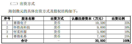 由海創(chuàng)微元作為新的實施主體繼續(xù)實施公司2021年向特定對象發(fā)行股票募投項目中的“MEMS高頻通信器件制造工藝開發(fā)項目”。賽微電子對海創(chuàng)微元出資1.05億元,持有其35%股權(quán),賽微電子參股子公司賽微私募出資7500萬元,持有其25%股權(quán)。