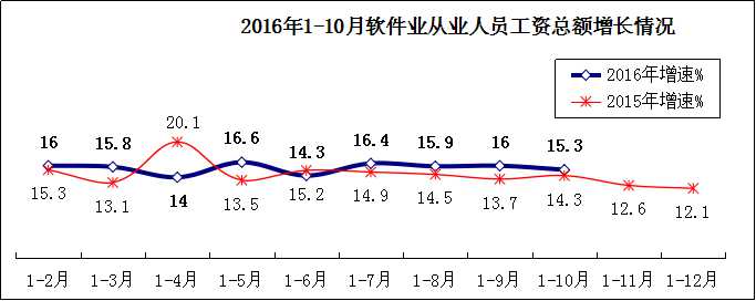 從業(yè)人數(shù)穩(wěn)定增長,工資水平持續(xù)較快上升。1-10月,我國軟件和信息技術(shù)服務(wù)業(yè)從業(yè)平均人數(shù)576萬人,同比增長6.8%,增速同比回落0.6個百分點。從業(yè)人員工資總額增長15.3%,增速同比上升1個百分點;人均工資增長8%,同比上升0.3個百分點。