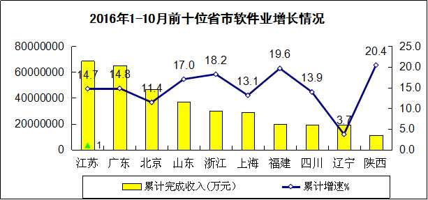 ICCSZ訊 2016年1-10月,我國軟件和信息技術(shù)服務(wù)業(yè)運行態(tài)勢保持平穩(wěn),收入保持較快增長,盈利狀況良好,出口穩(wěn)中有降。中西部地區(qū)繼續(xù)較快發(fā)展,中心城市軟件業(yè)顯現(xiàn)領(lǐng)先增長態(tài)勢。