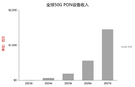 全球50G PON設(shè)備收入(來(lái)源:Dell 'Oro)