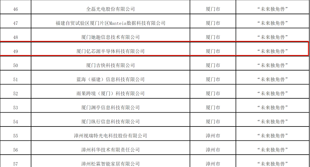 ICC訊 6月13日,福建省數(shù)據(jù)管理局發(fā)布關(guān)于2024年度全省數(shù)字經(jīng)濟(jì)核心產(chǎn)業(yè)創(chuàng)新企業(yè)征集遴選結(jié)果的公示,廈門億芯源憑借在高速光通信技術(shù)領(lǐng)域的強(qiáng)勁實(shí)力,獲評(píng)“未來(lái)獨(dú)角獸”企業(yè),這是公司自2022年入選“未來(lái)獨(dú)角獸”企業(yè)之后再獲此項(xiàng)殊榮。