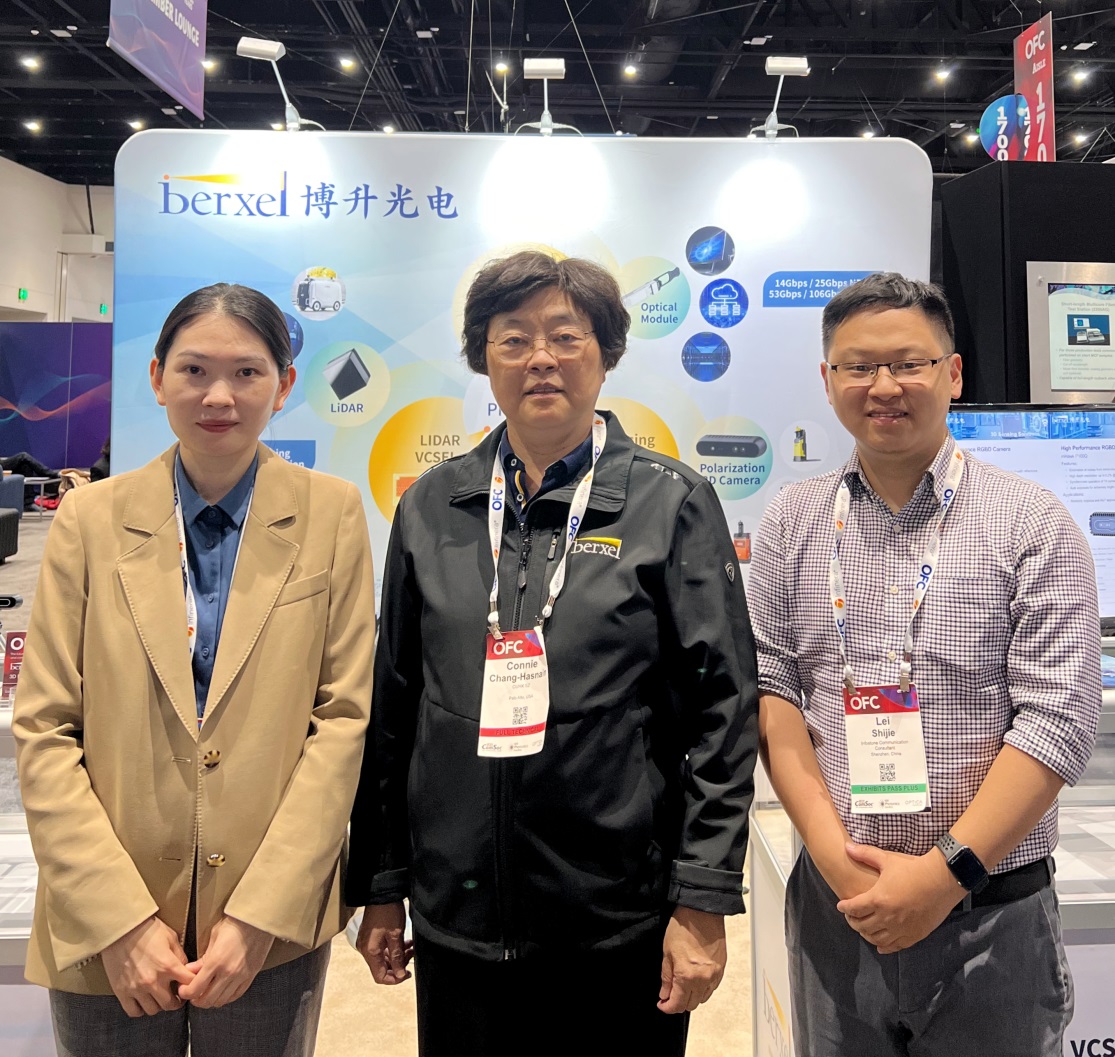 ICC訊 第49屆光網(wǎng)絡(luò)與通信研討會(huì)及博覽會(huì)(OFC2024),于2024年3月26日至28日在美國(guó)加州圣地亞哥會(huì)展中心盛大舉行。先進(jìn)VCSEL芯片設(shè)計(jì)制造企業(yè)——深圳博升光電科技有限公司(以下簡(jiǎn)稱:“博升光電”或“博升”或“公司”)再次亮相OFC,隆重展示106Gbps PAM4 高速VCSEL,小發(fā)散角單偏振高功率多結(jié)VCSEL 以及 高性能超表面技術(shù)3D相機(jī)等光電半導(dǎo)體產(chǎn)品。