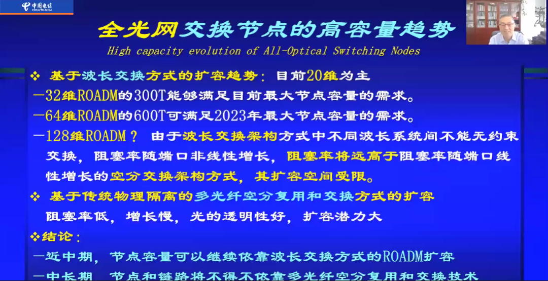 本次峰會主要議題分為上下兩個(gè)半場:上半場聚焦挑戰(zhàn)光傳輸極限,針對光傳輸領(lǐng)域的超高速、激光器、調(diào)制方式等展開研討。中國電信科技委主任韋樂平分享了“運(yùn)營商視角下的全光網(wǎng)發(fā)展趨勢與挑戰(zhàn)”的技術(shù)報(bào)告,他認(rèn)為運(yùn)營商的光網(wǎng)絡(luò)要持續(xù)演進(jìn),推動(dòng)全光化部署、推動(dòng)傳送鏈路、交換容量的提升、推動(dòng)全光架構(gòu)下的網(wǎng)絡(luò)智能化提升、并且推進(jìn)光網(wǎng)絡(luò)與5G/6G的協(xié)同發(fā)展,共同支撐通信產(chǎn)業(yè)的發(fā)展。