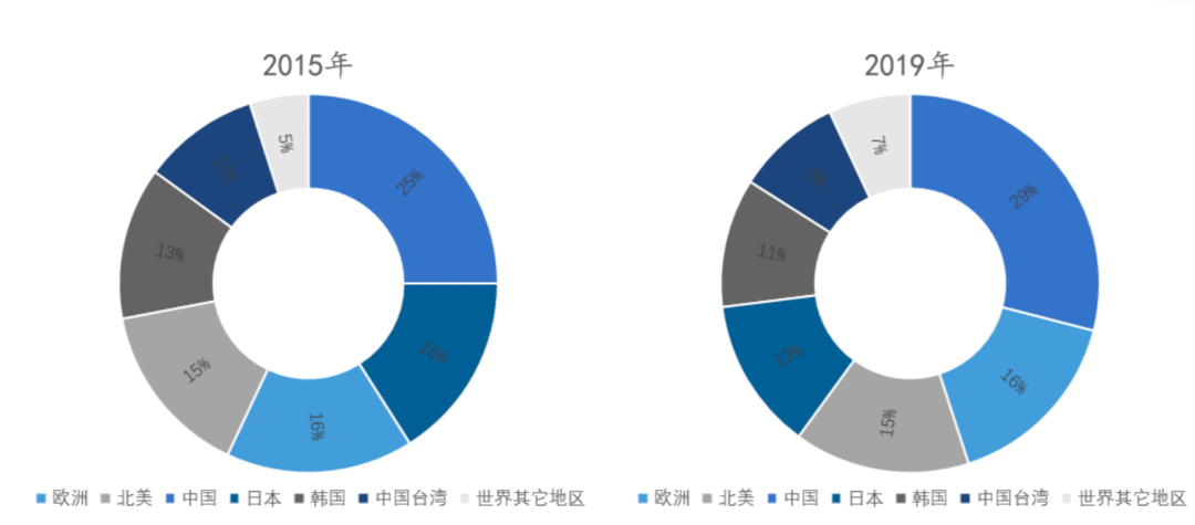 光子技術(shù)及產(chǎn)業(yè)的主要市場集中在北美地區(qū)(美、加)、歐洲地區(qū)(英、德、法、荷等)和亞太地區(qū)(中、日、韓、中國臺灣)。而從2019年的數(shù)據(jù)來看,中國在光子產(chǎn)業(yè)是全球最大的市場,且市場份額有上漲的的趨勢,歐洲和美國則分列二三,市場份額暫未突破20%。當然,這并不意味著全球局勢不會發(fā)生變化,畢竟光子技術(shù)及其應(yīng)用仍處在發(fā)展初期,各國(企業(yè))都在“拼命”地進行研發(fā)與應(yīng)用。