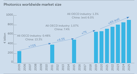 ▲全球光子產(chǎn)業(yè)市場規(guī)模 (€/billion)