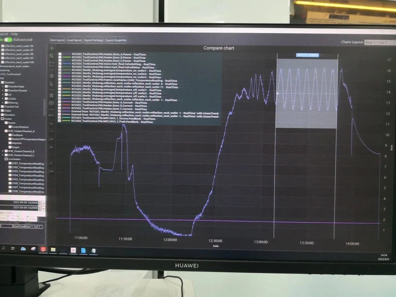 圖4 首爐生長的調試場景和原位監(jiān)控曲線