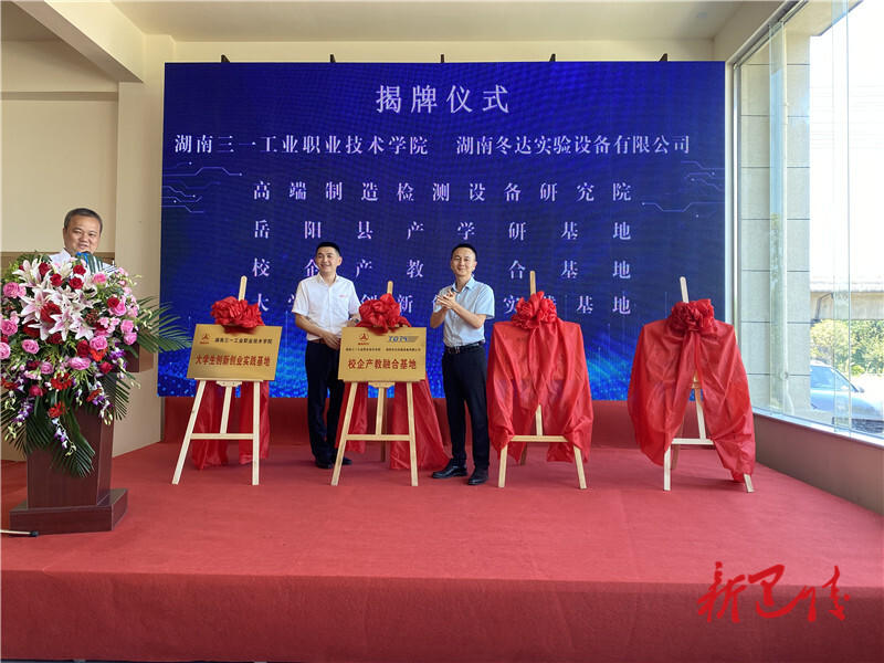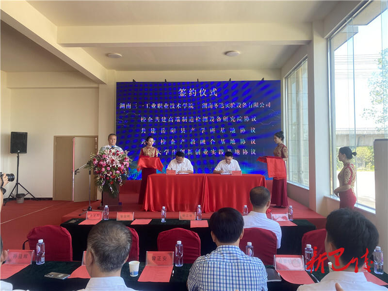 ICC訊 8月8日,湖南三一工業(yè)職業(yè)技術(shù)學(xué)院與湖南冬達(dá)實(shí)驗(yàn)設(shè)備有限公司舉行校企合作簽約揭牌儀式??h委常委、常務(wù)副縣長童勛海出席并致辭,縣政協(xié)副主席、岳陽高新技術(shù)產(chǎn)業(yè)園區(qū)管委會主任余望新參加。