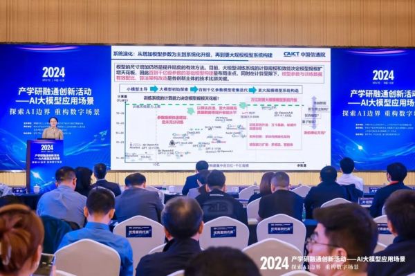 ICC訊 9月27日,以“探索AI邊界重構(gòu)數(shù)字場(chǎng)景”為主題2024產(chǎn)學(xué)研融通創(chuàng)新活動(dòng)在北京正式召開,26位演講嘉賓齊聚,共話生成式人工智能的關(guān)鍵技術(shù)與應(yīng)用趨勢(shì),共探AI大模型在7大領(lǐng)域的應(yīng)用落地。中國(guó)信通院人工智能研究所軟硬件與生態(tài)部主任李論發(fā)表了《大模型應(yīng)用落地趨勢(shì)與路徑》主題演講,在詳述大模型的范式變遷與模型演進(jìn)的同時(shí),強(qiáng)調(diào)了底座支撐作用。她指出,模型的原始創(chuàng)新與大模型訓(xùn)推系統(tǒng)深度耦合,大模型落地時(shí),計(jì)算能力決定了大模型性能天花板。