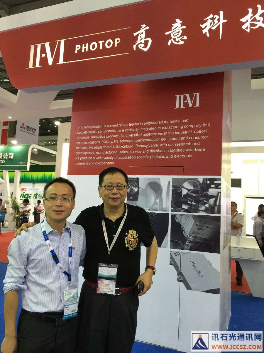 光博會是一個展示自我的平臺,是與客戶、伙伴親密交流的寶貴機會,是與行業(yè)精英分享、學習行業(yè)發(fā)展趨勢的盛會,而高意和訊石就像多年的老伙伴,親們無間。九月初訊石研討會度過了十五周年,高意參加了這場盛會,與廣大光通訊同仁分享行業(yè)大勢,探討未來發(fā)展,訊石由衷感謝高意對訊石一直以來的支持!光博會開幕,訊石團隊更是全體拜訪了高意展廳,訊石董事長石明先生在現(xiàn)場與高意通訊中國區(qū)銷售總監(jiān)丁發(fā)展先生親切交流,兩人合影留戀。高意祝愿訊石研討會明年更上一層樓,越辦越好!正所謂友誼地久天長,合作共促發(fā)展,訊石祝愿高意科技在光通訊大趨勢中贏得先機,越發(fā)強大!