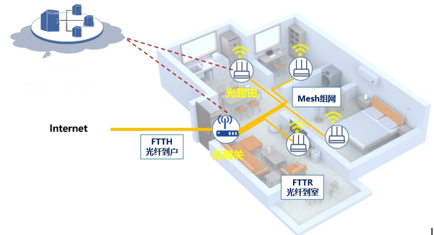 中國(guó)移動(dòng)立足全家WiFi業(yè)務(wù),結(jié)合光纖網(wǎng)絡(luò)建設(shè),推出了中國(guó)移動(dòng)全光WiFi解決方案,同時(shí)攜手合作伙伴,完成了全光WiFi標(biāo)準(zhǔn)制定,包括終端技術(shù)要求、終端管理要求、工程部署要求、體驗(yàn)驗(yàn)收要求等。全光WiFi解決方案指采用光網(wǎng)關(guān)、光路由、光纖及光配件等進(jìn)行室內(nèi)Wi-Fi覆蓋的方案,通過(guò)光纖替代網(wǎng)線,直達(dá)房間,光纖一次部署無(wú)需更換,實(shí)現(xiàn)1Gbp->10Gbp->100Gbps平滑過(guò)渡演進(jìn),Wi-Fi 5G單房間使用,網(wǎng)絡(luò)高速穩(wěn)定,時(shí)延低,解決了Wi-Fi穿墻,無(wú)線回傳占用Wi-Fi信道的問(wèn)題,讓每個(gè)房間都能實(shí)現(xiàn)千兆網(wǎng)絡(luò)體驗(yàn)。