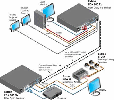 Extron FOX 500 Tx/Rx光纖延長器包括發(fā)送器和接收器,用來通過單條光纜進行遠距離傳輸高分辨率RGB信號、音頻和RS232控制信號。它特別針對可靠性和優(yōu)異的高分辨率圖像質(zhì)量而設(shè)計,采用Extron獨特的全數(shù)字零壓縮技術(shù),實現(xiàn)了完美的逐一像素的計算機視頻傳輸,最高分辨率可達UXGA(1600X1200)。特別針對視音頻系統(tǒng)而設(shè)計的FOX 500還包括了許多面向集成商的友好特性,例如圖像調(diào)整和校準,接收器的雙路RGB和音頻輸出,多位置RS-232控制、機架安裝能力以及實時系統(tǒng)監(jiān)控等。