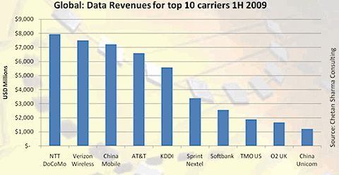 2009年上半年全球十大運(yùn)營(yíng)商數(shù)據(jù)業(yè)務(wù)營(yíng)收