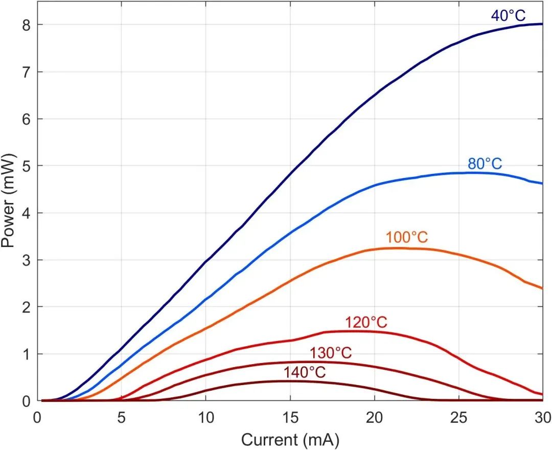 在高達(dá)140°C、1390 nm的光電流測量中,多模VCSEL具有卓越的溫度性能